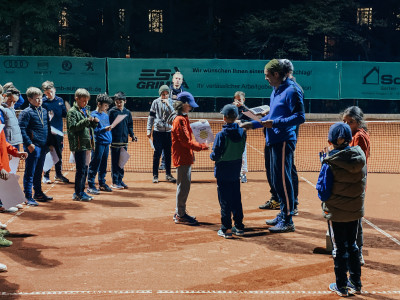 Auch Mark, unser aktiver Fußballer im Trainerteam, ist hungrig auf Tennis. Seine Energie ist einfach großartig. Er gewinnt sein Match klar und sein Team siegte schlussendlich deutlich mit einem 9:0.