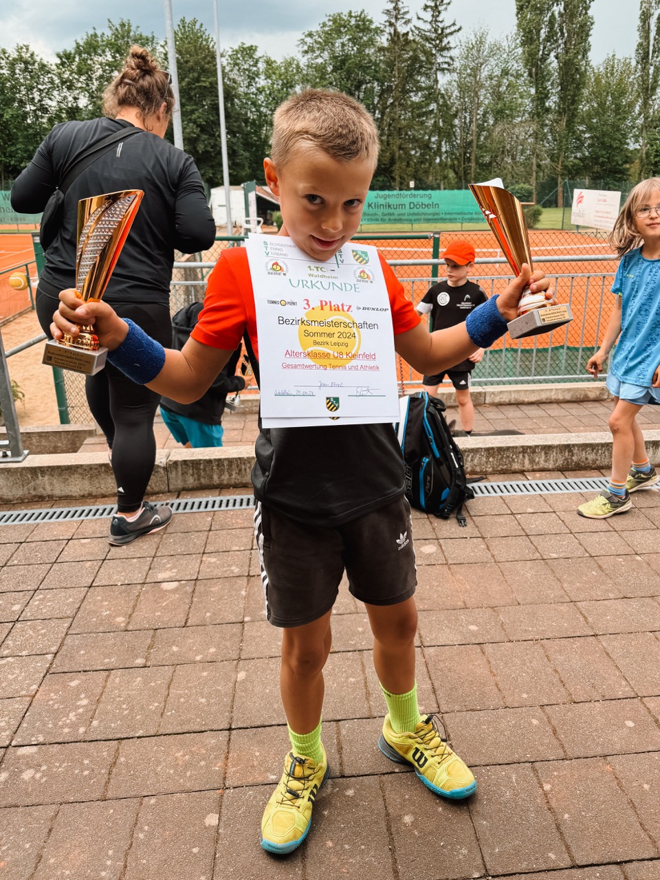 Unsere jungen Tenniskinder erlebten einen ganzen Tag voller spannender Matches und toller Momente. Am Ende freuten sich alle über die hervorragenden Ergebnisse von Malo Wille (Gold MC), Noah Janssen (Bronze MC), Jakob Roloff (Gold Großfeld) und Erik Franke (Silber Großfeld)