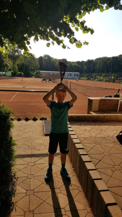Das erste Halbfinale bestritt Noah gegen den Potsdamer Michail Khotsin. Absolut motiviert und mit vollem Kampfeinsatz konnte Noah beide Sätze mit 4:2/4:2 für sich gewinnen und sich das Ticket ins Finale sichern. Auch Johann lief zur Höchstform auf und rannte mit vollem Einsatz von Ball zu Ball. Dies wurde mit einem 4:3/4:2 und ebenfalls mit dem Einzug ins Finale belohnt. Im Finale spielte Noah dann in der U6 gegen Zino Mare Matijevic vom Dahlemer Tennisclub, welcher vorab noch kein Match des Turniers verlor. Hier konnte sich Noah mit Strategie und seinen letzten Kräften mit 4:3/4:2 den Sieg sichern. Johann stand im Finale der U7 dem Gegner Nick Ehmer vom TC Weiß-Gelb Lichtenrade gegenüber. Hier hatte es Johann nicht leicht, kämpfte aber wie ein Großer um jeden Punkt. Mit einem Endergebnis von 4:2/4:0 konnte er sich den 2. Platz sichern. Hochachtung für die tollen Leistungen und weiter so!